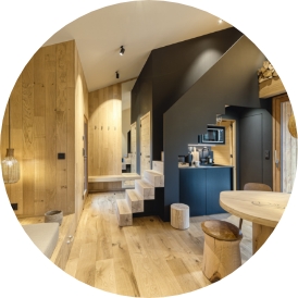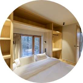 Dans ce lodge, nous pouvons accueillir 4 à 6 personnes (canapé lit dans le salon) dans un environnement cosy et décoré avec goût en collaboration avec Label 5.9 (studio d’architecture liégeois).