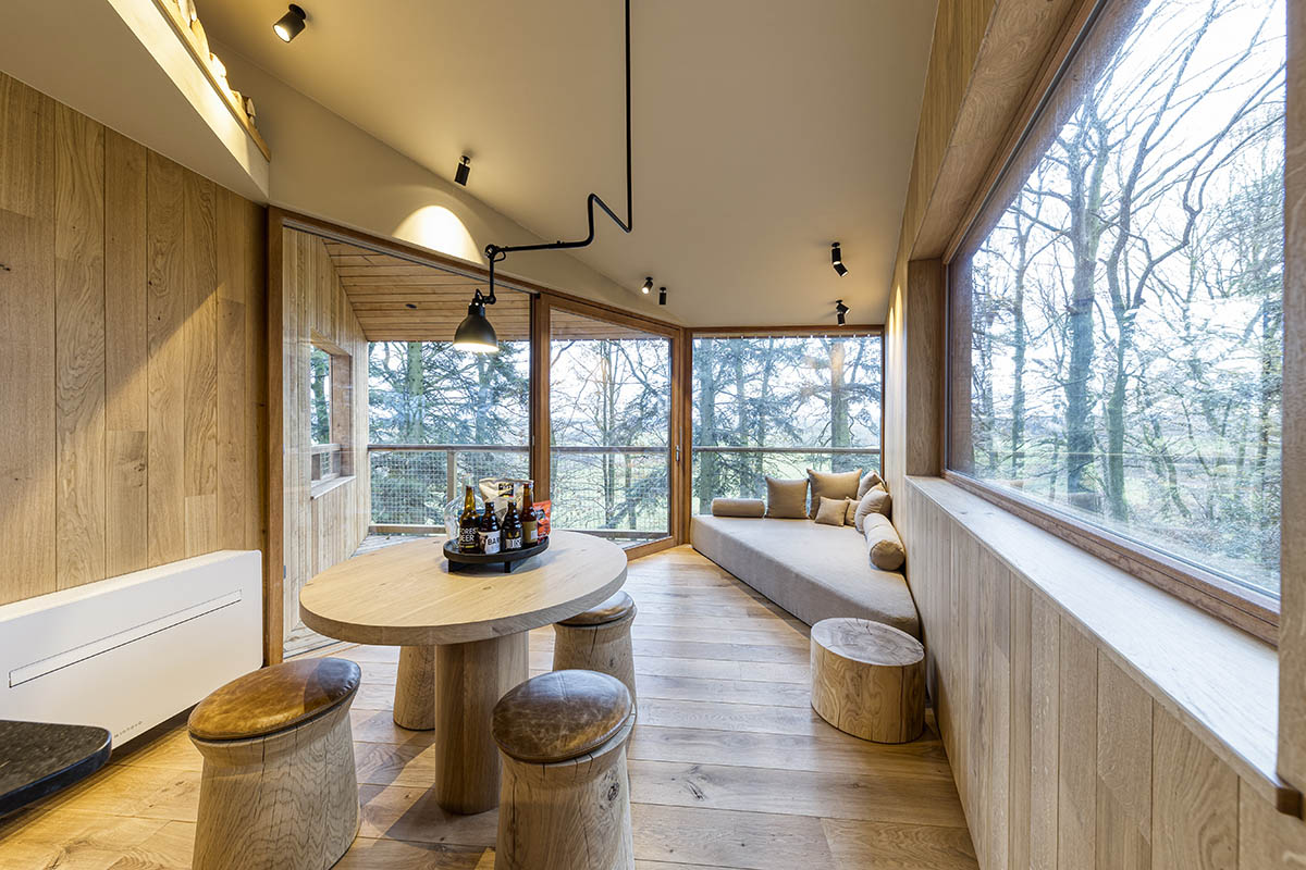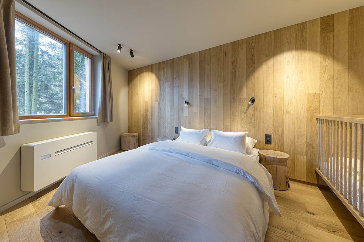 Dans ce lodge, nous pouvons accueillir maximum 4 personnes dans un environnement cosy et décoré avec goût en collaboration avec Label 5.9 (studio d’architecture liégeois).