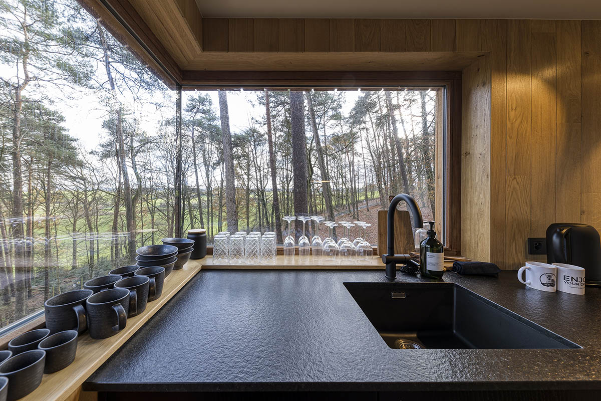 Dans ce lodge, nous pouvons accueillir maximum 4 personnes dans un environnement cosy et décoré avec goût en collaboration avec Label 5.9 (studio d’architecture liégeois).